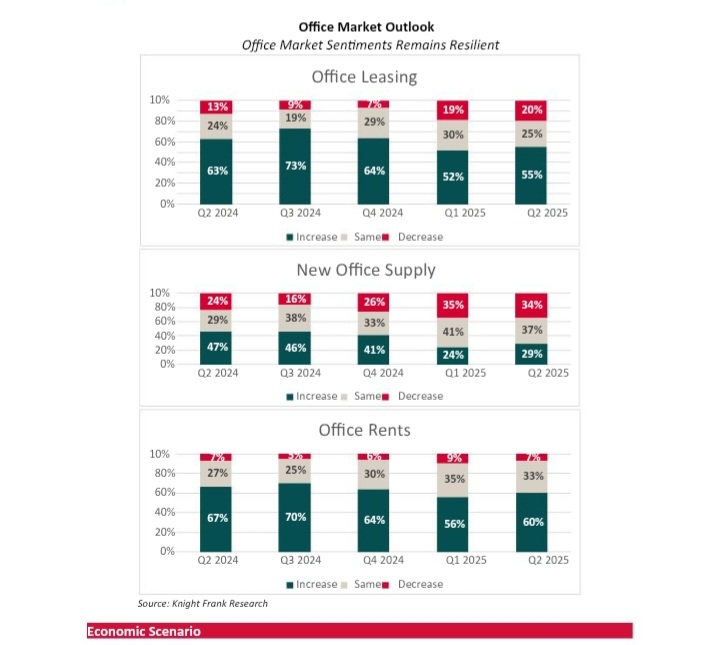 In conclusion, the Knight Frank-NAREDCO Real Estate Sentiment Index for Q2 2025 highlights a cautiously improving outlook, with both current and future scores rebounding after multiple quarters of decline. Residential markets are adjusting to shifting demand patterns, with high-ticket segments maintaining strength, while the office sector continues to outperform, led by strong GCC and Third-Party IT leasing. Monetary easing, robust economic indicators, and improved liquidity have supported this sentiment shift. Stakeholders are cautiously optimistic, realigning strategies to tap into evolving market opportunities. As structural fundamentals remain intact, India’s real estate sector is well-positioned to sustain its growth trajectory in the coming quarters, despite external uncertainties.