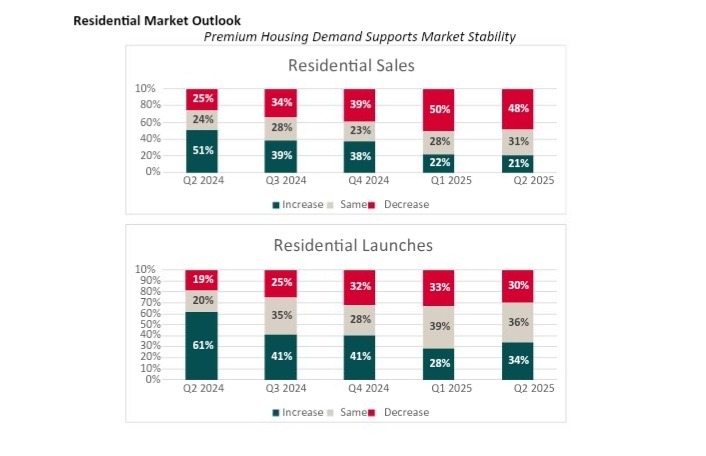 The survey also revealed that approximately 70% of stakeholders expect residential launches to either remain the same or increase in the coming months, showing a clear vote of confidence in the upper-end housing segments. The premium and luxury categories, particularly those priced above ₹10 million, continue to perform well. Developers are showing strategic maturity by focusing on select high-performing micro-markets. These launches are being curated carefully, aligning with specific buyer preferences, lifestyle expectations, and urban expansion trends. In contrast, developers remain measured when it comes to launching mid- and low-income housing projects, largely due to affordability headwinds and squeezed margins despite the use of incentives and financing schemes.