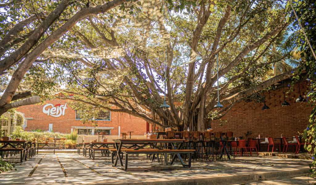 Geist Brewing Co – ought to be at the top of your list, if you are searching for a laid-back place in Bangalore to taste fresh, premium craft beer. This lush outdoor beer garden you see is the original location of Geist’s inventive craft brewery, where each beer is brewed and poured fresh on-site.